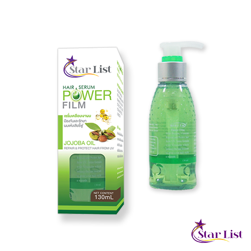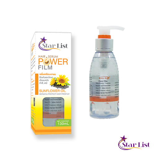 "Star List Power Film สตาร์ลิสต์ พาวเวอร์ ฟิล์ม"☆ อาหารเคลือบเงาเส้นผม ช่วยป้องกันและรักษาผมเสียขณะยืดผม หรือหลังทำสี☆ มีส่วนผสมของโปรตีนและวินตามินอีเข้มข้น ช่วยบำรุงผมให้นุ่มลื่นเงางา☆ ช่วยป้องกันความร้อนจากการโดร์ผม การรีดผมและรังแสง UV ที่เป็นสาเหตุที่ ทำให้ผมแห้งเสีย